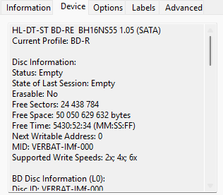 Van egy régebbi, LG BH16NS55 írom. A legújabb 1.05-ös firmware van rajta (2020). Szinte 100%-ban képek és videók archiválására használtam. Eddig a 25GB-os nyomtatható Verbatim lemezekkel hibátlanul tette a dolgát. Néhány 50GB-os is készült vele. Fél éve viszont rendeltem egy 50GB-os Verbatim pakkot Japánból.