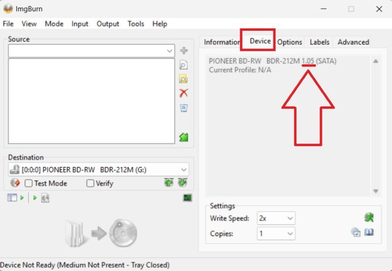 Win11, Imgburn 2.5.8.0, Pio BDR-209M (fw 1.33).