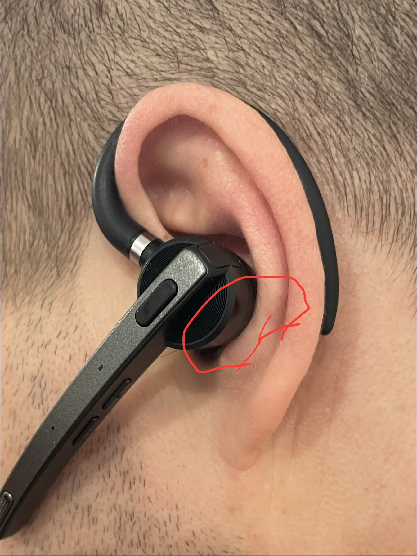 A bekarikázott részen, ahogy a műanyag ház “ráül”/hozzáér a fülkagyló alsó részéhez, na ott kezd el fájni. [kép]