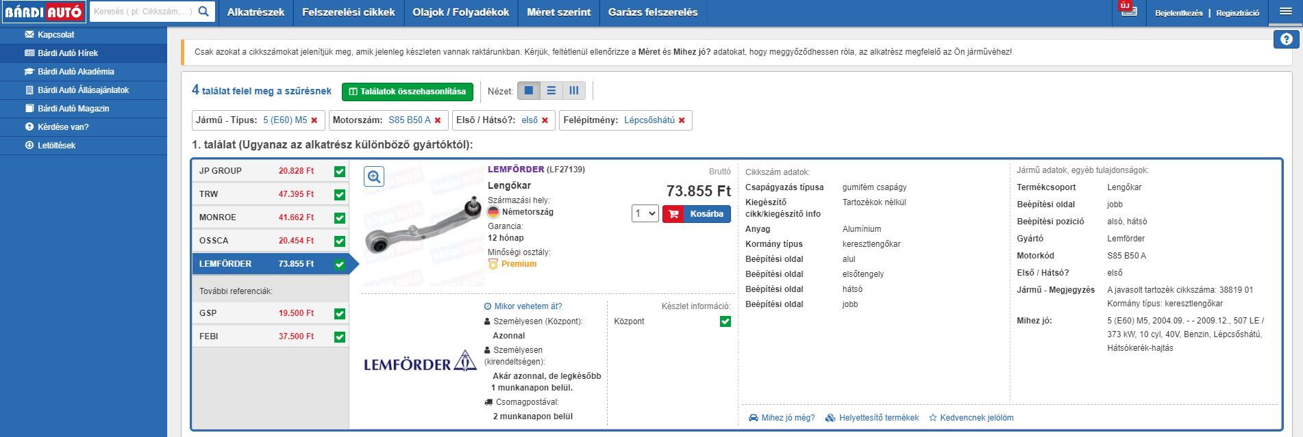 bárdi, kauffer webshopokban magad is láthatod hogy pl fékek, futómű alkatrészek ára a duplája ahhoz képest ami nem m performance-hoz való.