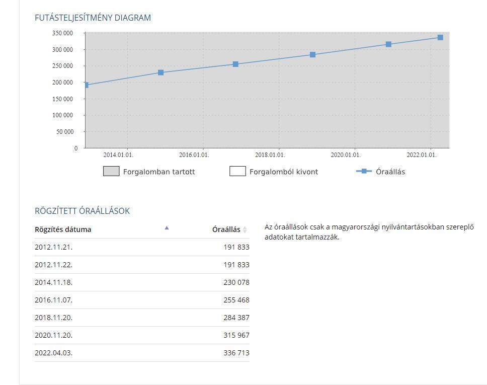 Ami nekem van is az, szervizkönyves volt egészen addig, de relatíve fiatalon került ide. 220e km-el, most 10 év után került bele (de mindjárt megnézem)