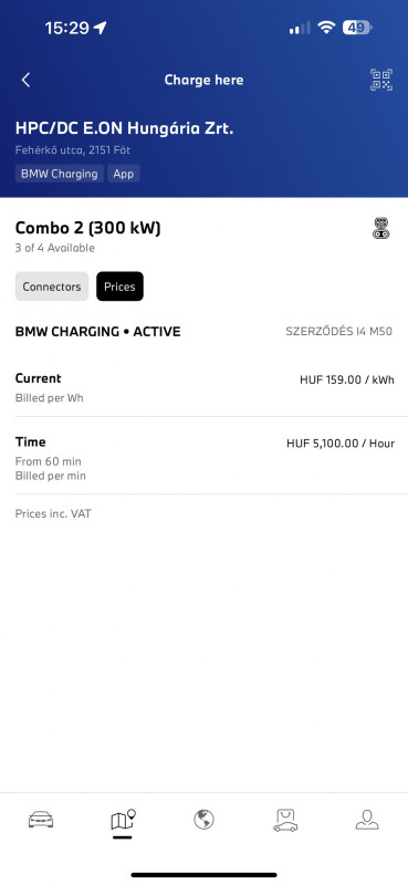 Parkl nem indul BMW kártyával és nekik teljesen random árazásuk van. Nyíregyházán pl. minden AC töltőjük 250 Ft / kWh.