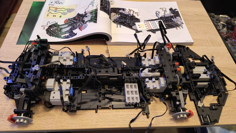 Elkészült a második fázis... Hát, nem is tudom, mit mondjak. Kezdem azt hinni, hogy sosem fogok elkészülni vele. Nem hiába mondják, hogy jelenleg ez a legbonyolultabb Technic szett. Ennyi kábelt még az öreganyám sem látott. Ráadásul, ahogy a kézikönyv szerint el kell vezetni a kábeleket, az kész röhej... De kezdjük az elején.
