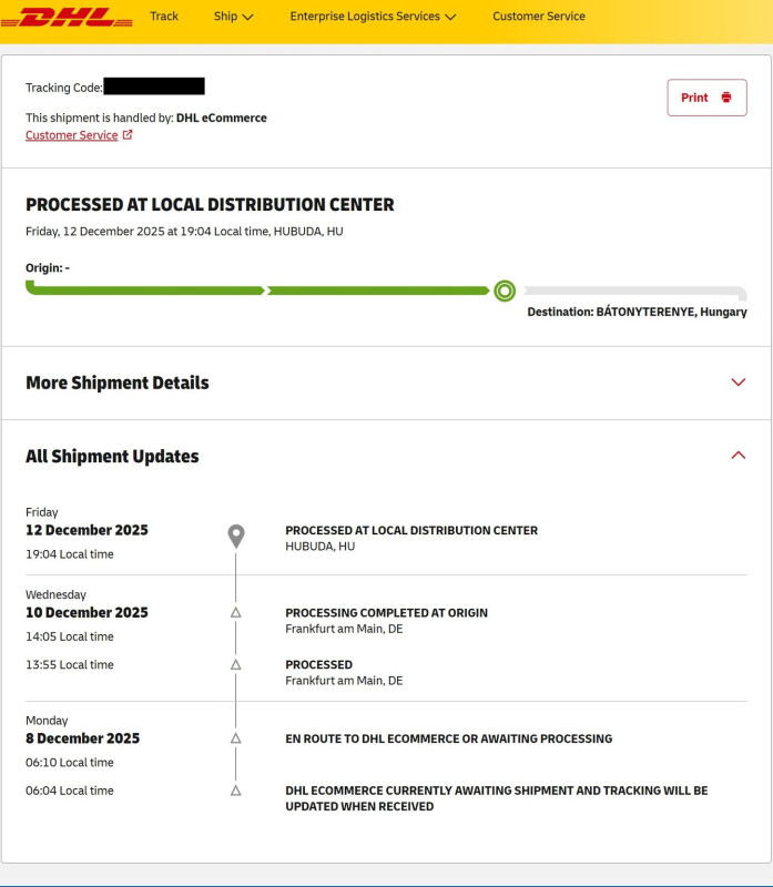 Szóval nem tudom, mi történt. December 8-án adták fel, vagyis 5 nappal azután, hogy megtettem a bejelentést (December 3-án jeleztem feléjük, hogy hiányzik az alkatrész). Ha nyolcadikától számoljuk, akkor még valóban nem telt el 15 nap a feladás óta (22-én, hétfőn jár le ez a határidő). Viszont ők azt vállalták, hogy a bejelentéstől számítva 15 napon belül megérkezik. Emiatt nem értem ezt az egészet.