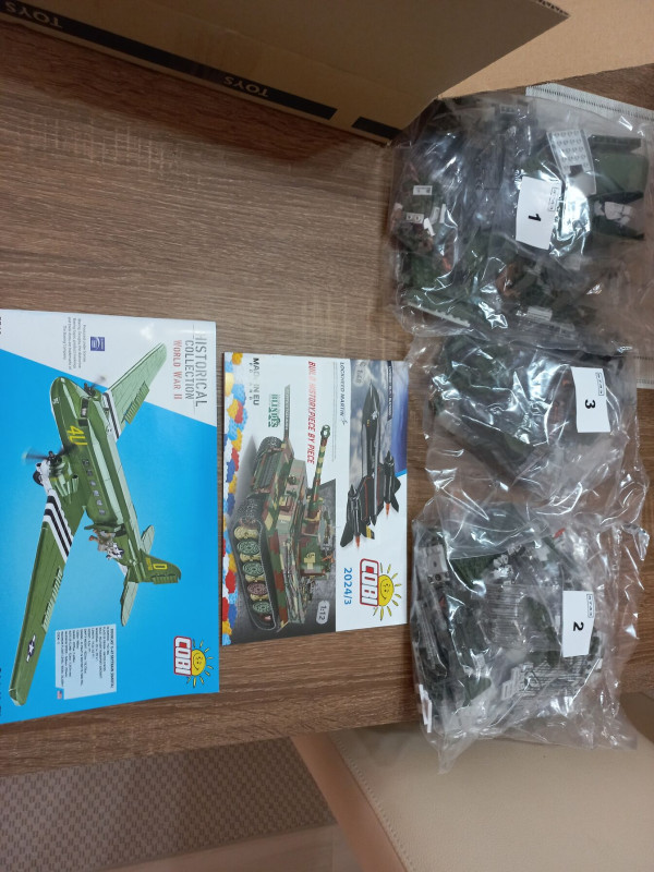 Megjött a Cobi készlet. Külső gyári karton doboz, licenszelt boing készlet. Igényes csomagolás, plusz katalógus. 3 zacskónyi alkatrész, rajtuk a cobi felirat. Eddig nagyon igényes, kiváncsi leszek magára az alkatrészek minőségére, az illeszkedésre, építési élményre és úgy mindenre, hogy mi a különbség a Lego és ez között, egyáltalán van-e bármiféle különbség.