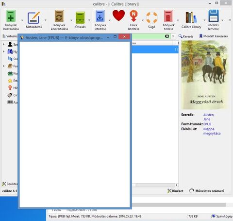 A Calibre portable változatát használom, és a legújabb frissítés óta nem nyit meg semmilyen könyvet, üresen nyit az olvasója.