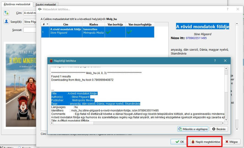 A saját Calibre programomból eltávolítottam mindkét moly.hu plugint, majd csak az itt csatolt verziót újratelepítettem. Nálam rendben működik, kíváncsian várom mások véleményét.Remélem ezzel már nem lesz probléma: [link]