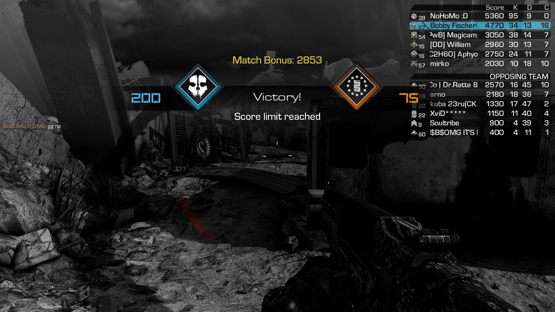 Nem vagyok pró pléjer,de felb...sz,amikor látom a hekkelt(ghilie?alig snipereznek,a harmad Ghosts mégis abban szaladgál,650 kill kell hozzá chrome barrellal!LEkakálom,hogy klántársával boostolja,ELŐNY!)