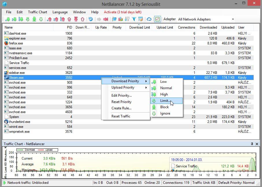 Wow, per app limitálás? Ez korrekt, cfos-ban nem talaltam ilyet csak prioritizálás ismer és teljes kapcsolatot tudja limitálni.