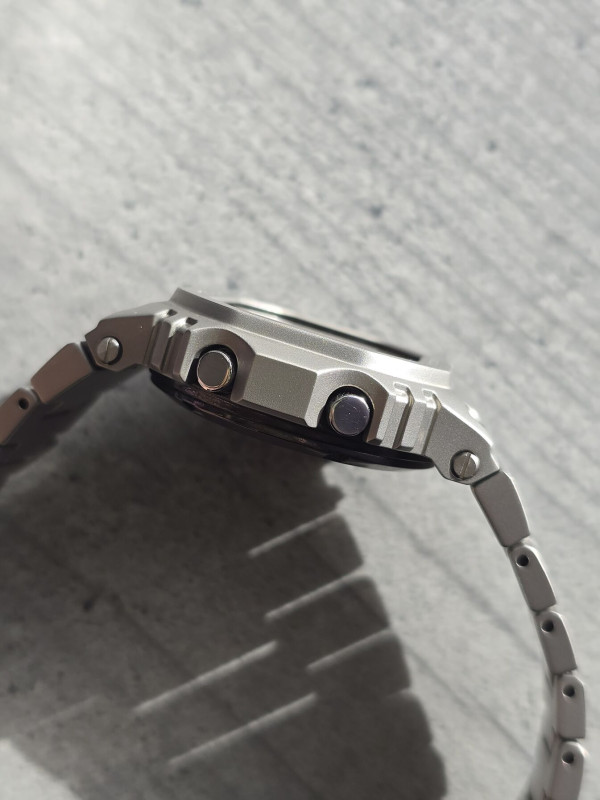 Nem értem, ha 1983 óta jó volt a jelenlegi tokforma és még a fém MRG esetén is , ha komplexebb módon, de tovább tudták vinni, akkor most miért kellett az újítás? Az eredeti fém változat hozza az eredeti formát, kvázi a rezin tok 1:1 másolata. Ez az új szendvics jellegű előlap nekem nagyon nem tetszik. Eddig 2db tengellyel megoldott volt a tokburkolat és a karperec stabil rögzítése, a screw back óratest egy zárt egységet képezett. Most kvázi plusz négy csavar tart fent egy előlapot. Számomra az oldalán a szennyeződés gyűjtő nagy rés is kérdéses. Jobban örültem volna, ha csak a MIP kijelző jön, mint újítás és marad a fém ház a régi. Így biztos vagyok benne, hogy a rezin tokos új MIP kijelzős érkezik a gyűjteménybe, legalább a pénztárcám sem fogja úgy megérezni. Metal még marad a mostani módosított bead blasting metal.