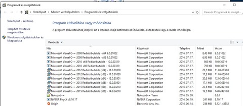 Ez mondjuk nem biztos, hogy jó ötlet volt, okozhat még galibát. Ha emlékszel mik voltak telepítve, akkor tedd vissza őket. Azért van kettő némelyikből, mert a 64 és 32bit-es is külön van telepítve. De szerintem is valahol a Visual C++ körül kell keresni a hibát. A DDU-t is csak akkor érdemes használni ha feltétlenül szükséges.