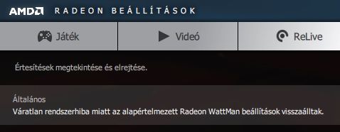 Telepítés után megpróbáltam megnyitni a felületet, de kaptam egy hibaüzenetet, hogy a radeon beállítás a driver verziója nem egyezik.