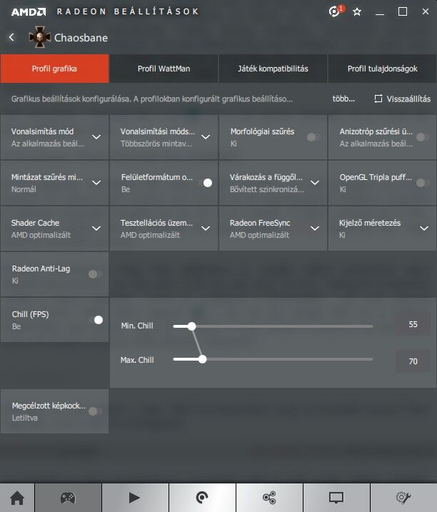 A chill,anti-lag,fressync,global wattman tökéletes működik,de a játék menü alatt a globális beállításoknak a beállítása semmi látható jele nincs játékok alatt.