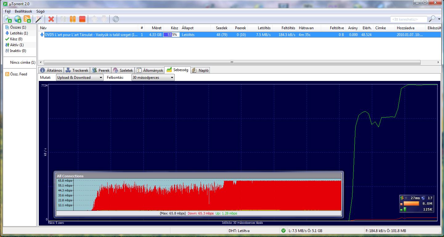 Torrent nincs korlatozva, mert fiebert nem tudnak korlatozni allitolag. En gyakran 5-8MB/s-el szedek le filmeket.