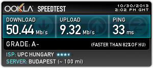 Debrecenben is hasonlóan "jó" az internet szolgáltatás. Mobilnet rendesen megy. Örülök, hogy upc-s lehetek. Köszönöm