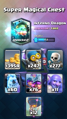 A sima gianttel szerintem pont az a baj /nekem lvl9 és azzal nyomulok/, hogy az inferno szétszedi. Odabattyog és még ha zap-t tolok, akkor is ledarálja. A royal legalább távolról tud bele sebezni még ha eléri akkor is, illetve ugyanez igaz a tornyokra, nem szivatja halálra a tomb se /szerintem ezek metába kerülése miatt lett tré lap most a giant/. Nekem is csak lvl10, megvan a 11re a lapmennyiség, még kitalálom upgradeljem e.