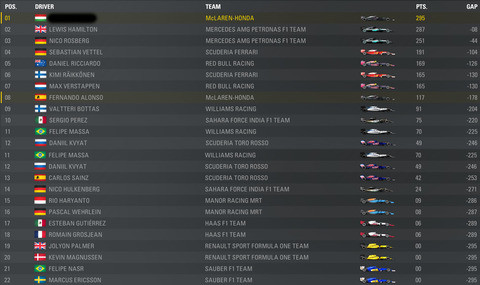 Egyebkent van 1-2 bug ami frissitest igenyelne, pl az hogy Vettel nyert nalam, majd a dobogora felall Sainz!?