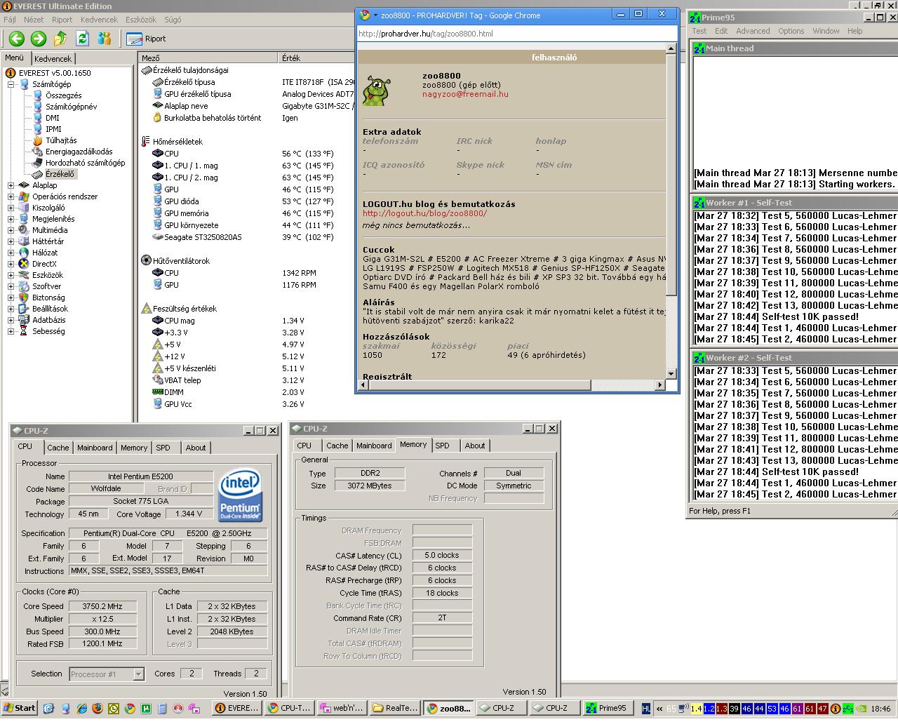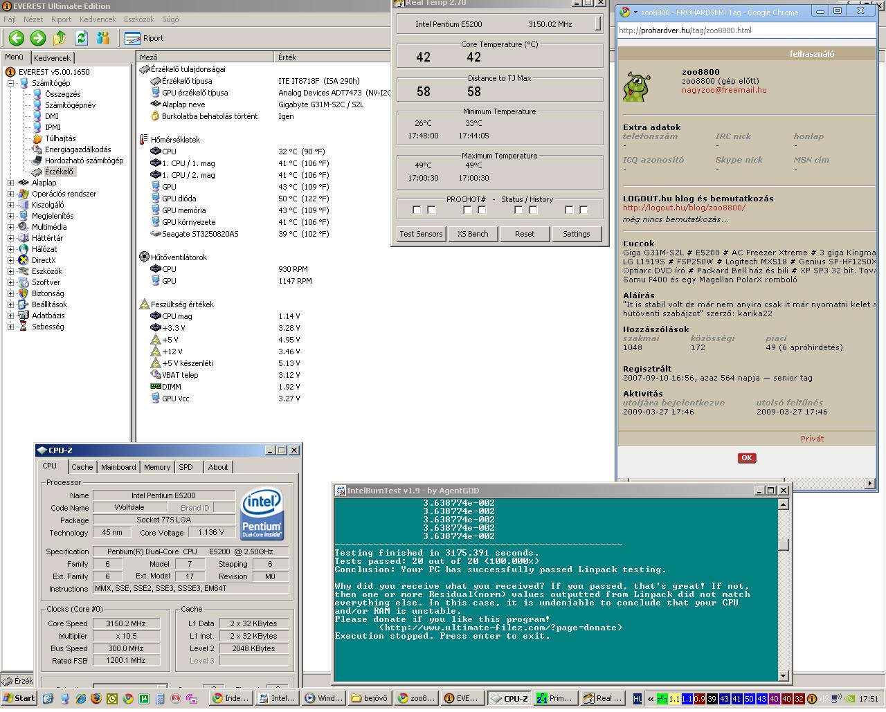 Inkább az IBT vált be. A régi Linpack progit nem ismerem.Volt még memória teszt nyüancom. Prime blend, ami ugye főleg a RAMot tépi (ha jól tudom). Prime fut, de sorban kifagynak a programok... Memtest 1 percet se bírt.