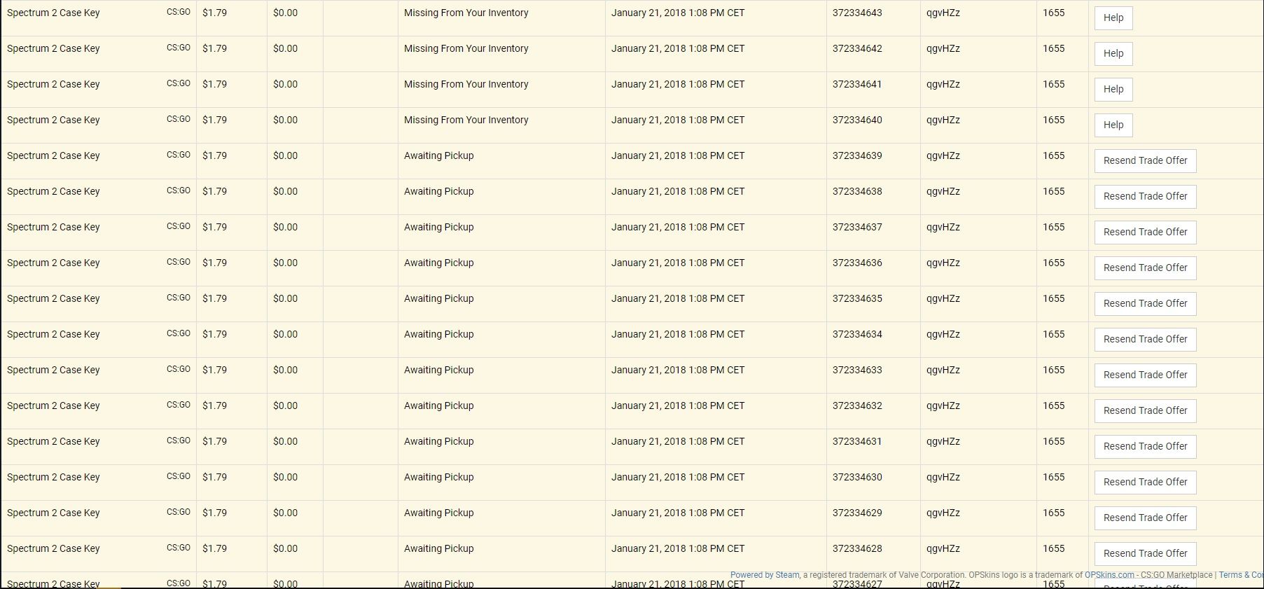 ...Pár hete kulcsokat akartam eladni OPSkins en, és a trade után nem történt semmi azon fellül hog yelvette a kulcsokat a bot