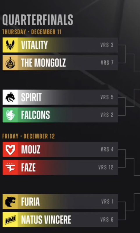 Mouz, Vitality, Furia, Falcons.