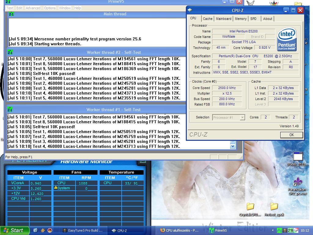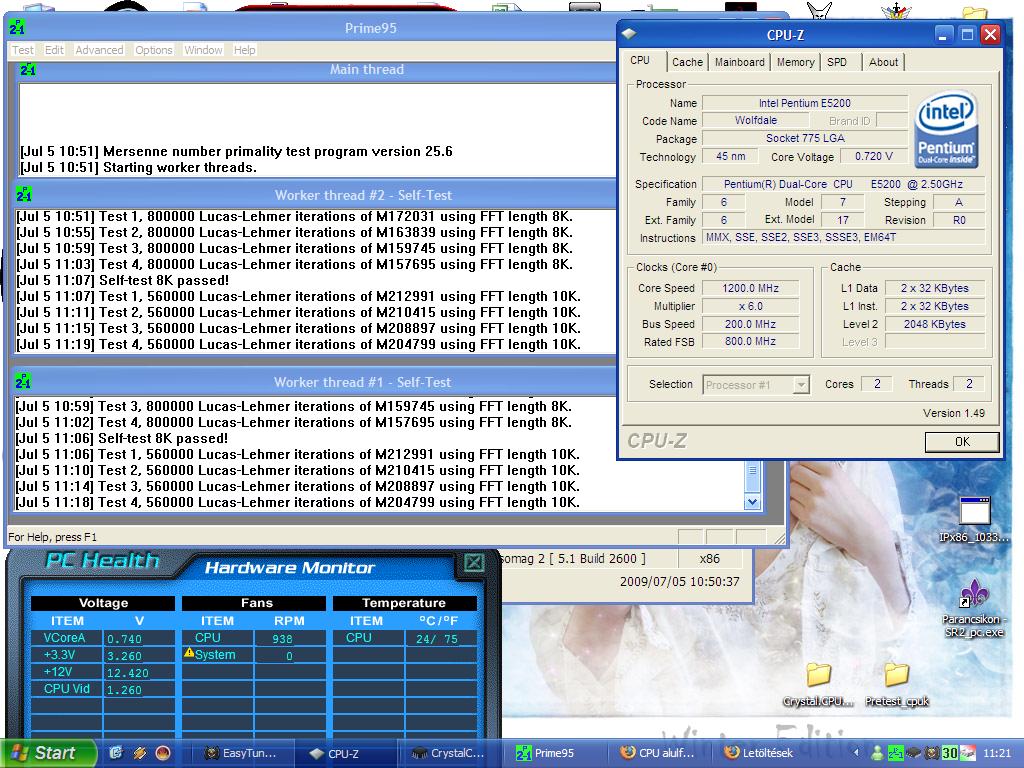 Próbálkoztam én is az E5200-am alul feszelésével, hát érdekes eredményre jutottam. Először megpróbáltam minimálisra húzni a frekit, és úgy csökkenteni a feszültséget. 6x122Mhz amin még elindult a proci, viszont a képen láthatónál nem tudtam jobban csökkenteni a feszt.