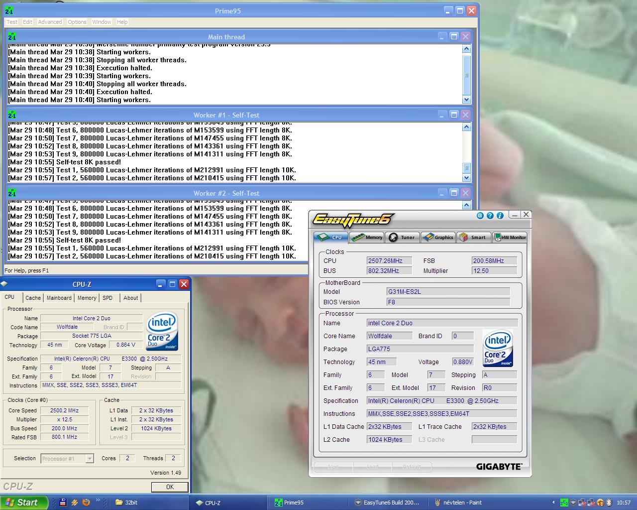 Összeraktam letöltő-csetelő gépet, mondván ez mehet egész nap. Gigabyet G31-es lap, Intel Celeron E3200, 2x1 Gb Kingstone, 1 Hdd, proci 0.96V Prime95 egy órát futott, proci hőmérséglete 2.4 GHz-en nem ment 29 fok fölé. Idle 45 W-ot fogyaszt, konnektorból mérve, egy Hippro beles 380-as CoolerMaster táppal.