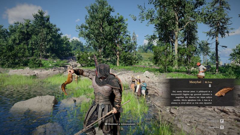 Horgászbotból is többféle van a játékban, alap, finom, pororin + egy legendás, bizonyára a jobb változatok kellenek a kapitálisabb méretek kifogásához. A simával nekem már sikerült egy 80+ cm-es menyhalat kifognom, amikor egyik mellékküldetés kapcsán leopárdsügért kellett fogni. Azt viszont nem tudtam, hogy halakból is vannak legendásak. Bár épp az ne lenne, amikor minden is van.