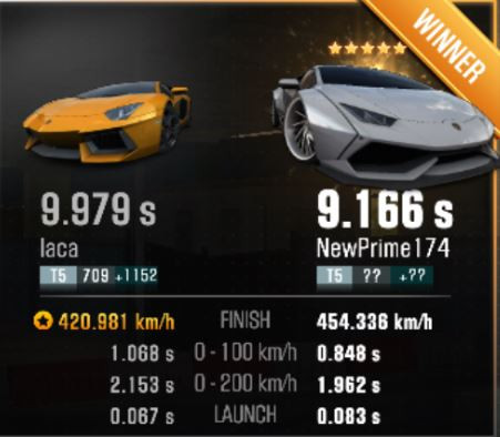 Én ma egy újabb program hibába futottam. Szuperül elrajtolok, és úgy tűnik az ellenfelem beragadt a rajtnál. Kb a táv feléig harmadáig, meg se mozdul a csúszkája. Aztán hirtelen a semmiből 4-5 másodperccel a rajt után hirtelen elém kerül a semmiből fénysebességgel, és megnyeri a futamot. Másik hiba, hogy tök normálisan lemegy a futam, lenyomom az ellent kb 0,3 másodpercel, erre kiirja hogy Race abdoned, és nem ad se pénzt se pontot a benyát bezzeg levonja. Miközben egy hibátlan futam volt. Volt már korábban olyan, hogy az ellenfelem el se indult, én beértem a célba, kiírta hogy Race refused és megkaptam a pénzt is, meg a pontokat is. És még egy, mikor én normálisan lefutottam a futamot az ellenfelem meg kb 30 másodperc alatt kocogott be alapjáraton. Gondolom ilyenkor arra játszik, hogy nem várom meg míg beér, és ő kapja a pontokat mert kiszállok.