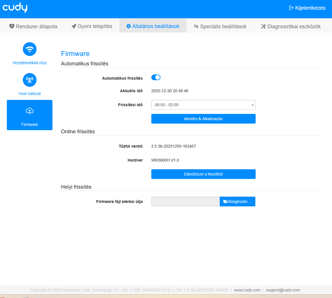 Ha valakinek hasonló gondja van ezzel a típussal (WR3600H / R69 hardware), ne várjatok a hivatalos frissítésre! Szívesen megosztom veletek a WR3600H-2.5.3b-20251205-163457-sysupgrade.bin fájlt