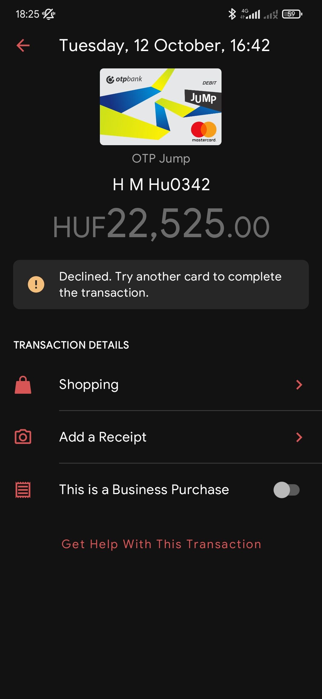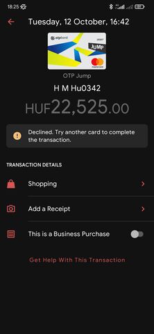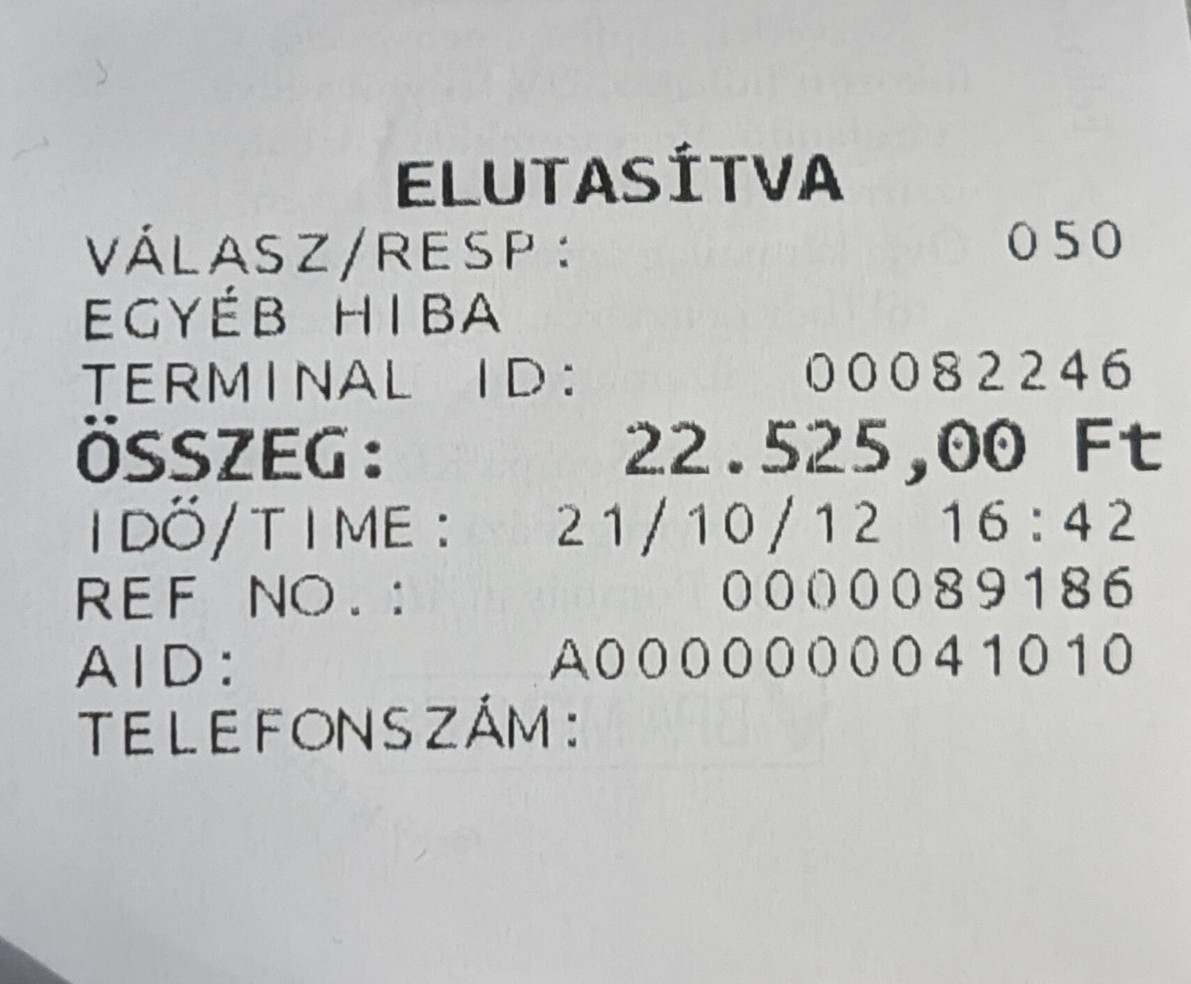 2.) Mai nap (2021.10.12) a Mammutos H&M-ben utasította el, de azonnal fel is oldotta az összeget, nem zárolta. Itt "050 egyéb hiba" volt.