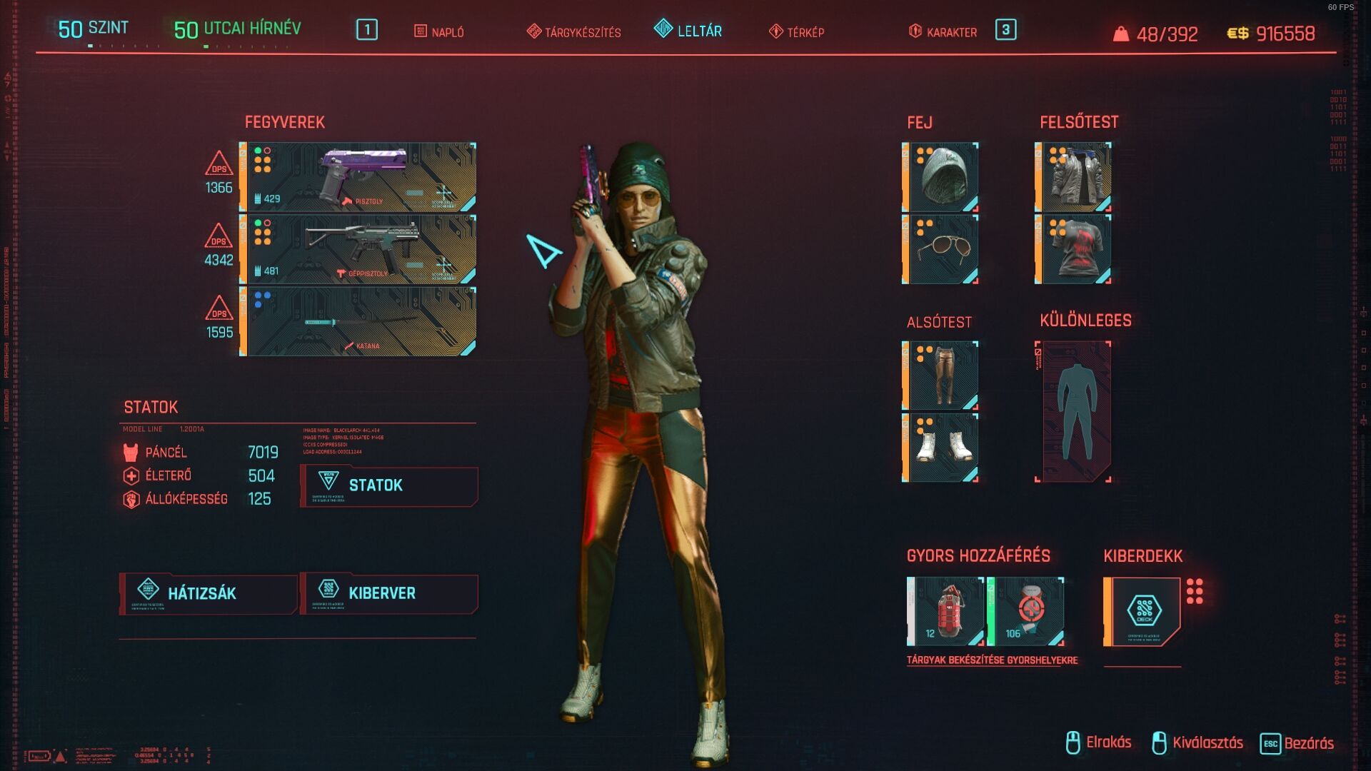 Igazából így 50-es szinten, kb. egyformán pakolva mindegyik működik, de sajnos a páncélom nem százas, ezért távolról simán lekap egy sniper 500-at az életerőmből úgy, hogy nem is látom, honnan lőtt. Illetve közelről a sörétes is halálos, de hát ez van, ez nem istenszimulátor, csak egy haldokló zsoldosé :-)
