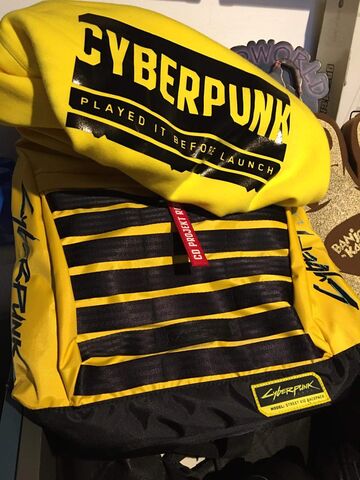 "One embargo lifted this morning when journalists were able to share that they have in fact played Cyberpunk 2077 last week. They played it for roughly 4 hours, the PC version with a Xbox One X Joypad. This is the package they got out of it, a sweatshirt that says "played Cyberpunk before launch" and a very cool looking backpack. The second embargo will lift Thursday after the Night City Wire event when they'll be able to share their actual thoughts about the game."