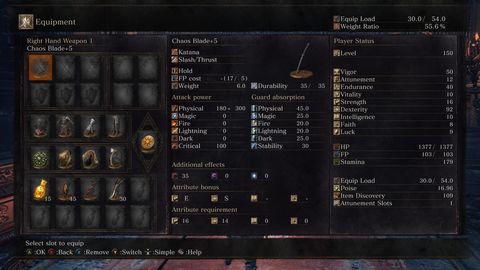 Chaos Blade-del tolom meg most épp a Firelink szettben, viszont ha 30 aláé akarok menni vagy tolok vitality-re vagy pucérozok, csak úgy túl könnyen megvagyok.