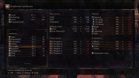 Ha strenght-es vagy akkor arra pakolj plusz teherbírás,stamina, életerő. Fegyókat meg fogsz találni bőven. Dlc-ket meg ráérsz megvenni csak ne menj át new game plusba.