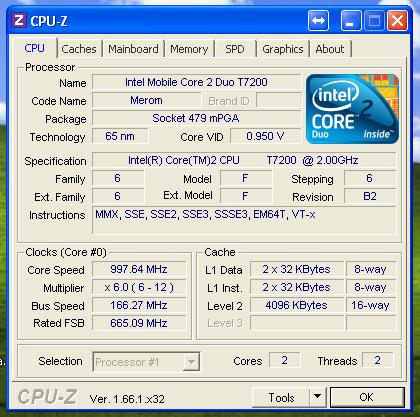 A proci csak 997,5 Mhz-n megy a 2 Ghz helyett. Nem tudom, mióta lehet ez így - most vettem észre, mert memóriát akarok benne bővíteni. Most 2 GB van benne egy modul. Szeretnék még egy 2 GB-ost mellé.Állítottam már mindent - amit mertem, mivel nem vagyok nagy guruja a laptopoknak.