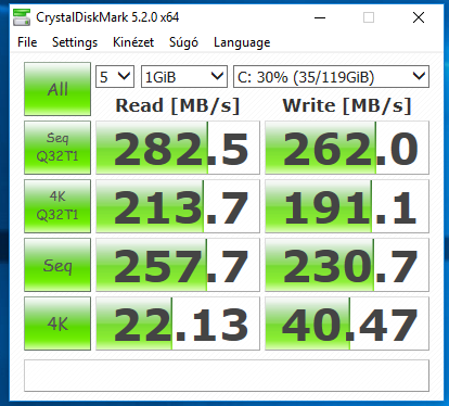 Minden pénz kérdése. Ha van pénzed akkor nézz szét a M2 NVMe driveok között. Tényleg tudják azokat az értékeket amik oda vannak írva. Nekem egy SK Hynix van és 2100 MB/s az olvasási sebessége és 800 MB/s körül van az írás. Ez volt benne gyárilag.