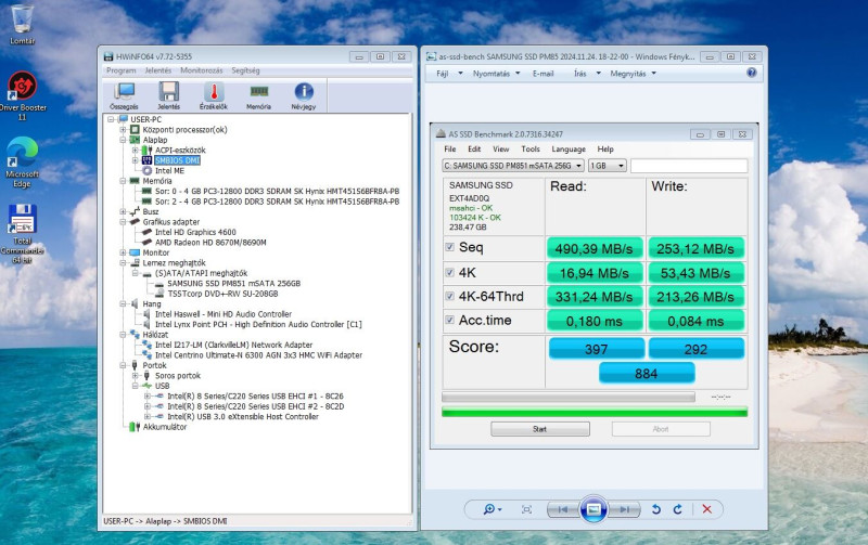 Az MSATA rendben van, bár kicsit lassúcska, de semmi hibát nem ír a tesztprogram.