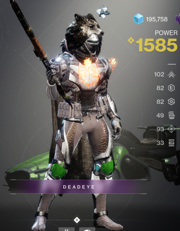 Én nagyjából most így állok PVE-re, valszeg ez lesz a Day1 Raid buildem is, csak majd még farmolnom kell hozzá néhány Artifice slot-os rucit a 0 energy-be kerülő Lightfall modok miatt