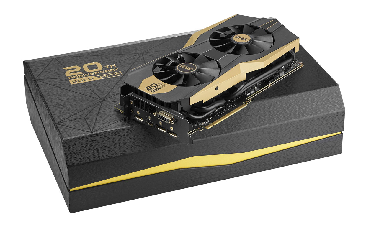 Ez az ASUS ROG 20 éves jubileumi kiadású GTX 980 Ti-je. A színe egy az egyben Deus Ex, de valójában semmi köze hozzá.