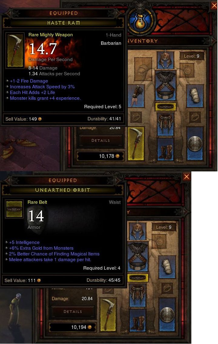 Csak neked, ez a legeleje, kb. csak Leoric szobájában vannak 9-10es szörnyek amik már dobnak 10-es szint feletti cuccokat,még a king is level 5 rareket dob csak,ehhez képest a kovácsnál a legalapabb cuccok után már lv 7-8 ,majd igen hamar 10,11 es szintü cuccokat craftolhatsz,persze hogy jobbak az ilyen 1-6-os szörnyek által dobható cuccoknál.