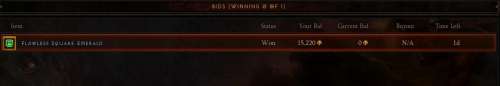 Azt hiszem a következő sikeres ügylet (vagy sikertelen bidelés) kilöki onnan a beragadt tételt. Ilyen drágakő-craft cucc területen jelzi a folyamatban levő bideknél. HA egy vértet/fegyvert veszel és az "akad be", akkor azt hiszem azt viszont nem jelzi. Vagy kivárod, vagy hiszel az urban legendnek és veszel 1-1 darab kavicsot/ tome-ot, vagy bármit. esetleg lehet a ládába is kell utalni a legutolsó még beérkezett itemet. Persze lehet simán megérjezett volna akkor is, ha nem szórakozok vele hasonló helyzetben.