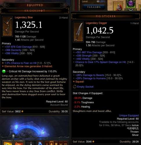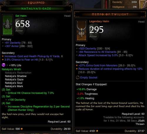 (#45132) proci985: Így, hogy a Poison Dmg-t enchantolni lehet 70-es szintű sebzés affixre, a 60-as Dex, 2 socket, >40% Damage, >70% chc Manticore-k BIS-nek tűnnek 70-en. A minap a legolcsóbb, 1100 dmg-s is 50+ millió volt AH-n. Valaki linkeljen egy jobb DH fegyvert a RoS betából, mert kezdek csüggedni