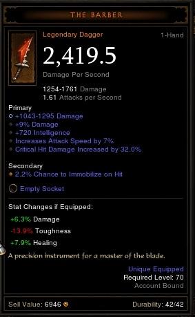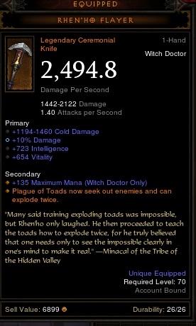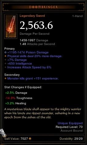 Adott egy 2450 dps körüli Rhen'Ho Flayer, és egy 2570 dps, 18% physicalos Doombringer. Mindkettőn ias és +%damage van, a különbség a fegyver sebzéséből adódik.