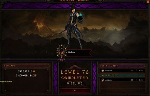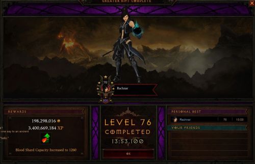 Végre ráértem gondoltam megyek egy kört. Ez egy 64-es. 0 tapasztalat ezzel a buildel. Nincs egy darab ancient itemem se paragon szintem is csóri+még a thorns gem sincs meg. Nagyon jókis build lett. Nem esik kel mint a hammer buildnél szépen lehet sebezni+jó a def is. Ancient itemekkel magasabb gemekkel és paragonnal+gem upgrade a cuccokra simán megyek vele 75-ös greatert. Szerintem sok embernek fog tetszeni ez a build. -