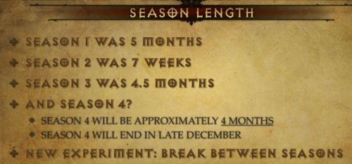 Lehet, hogy én értelemezem rosszul, de a képen a vége a késő december a season 4-nek, ami 4 hónap hosszú lenne a forrásod szerint, tehát dec -4hónap=augusztus. Ezzel el is lehetne érni a hosszabb szünetet a seasonok között, bár ez nem jelenti, hogy a 2.4 frissités a S4-el jön. Ha tippelnék akkor inkább a S3 végeztével, amit egy szünet követ, s a S4 lehet, hogy már 2.5-el kezdődik.
