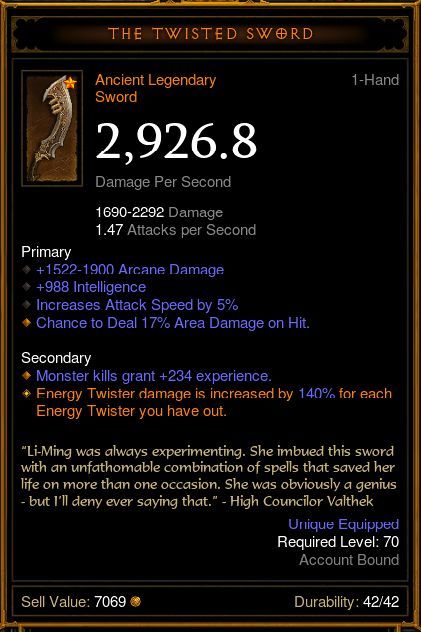 Azt probäld meg ki amit en mondtam, hogy a mäsodikra tekersz az ad helyere +10% dmg-et.Sok különbseg nem lesz a 2 fegyver dmg-e között, viszont lenn a bonuszban 3%-kal több a sebzes a mäsodiknäl mint a 3.näl.Es ha mondjuk 7 twister van kinn az mär 21% dmg különbseg a mäsodik javära.De persze ez mär csak szörszälhasogatäs, a lenyeg azon mulik, hogy ne halj meg magas gr-en, nem az, hogy picivel több legyen a sebzesed, mert ugye halott ember nem ad le dps-t.