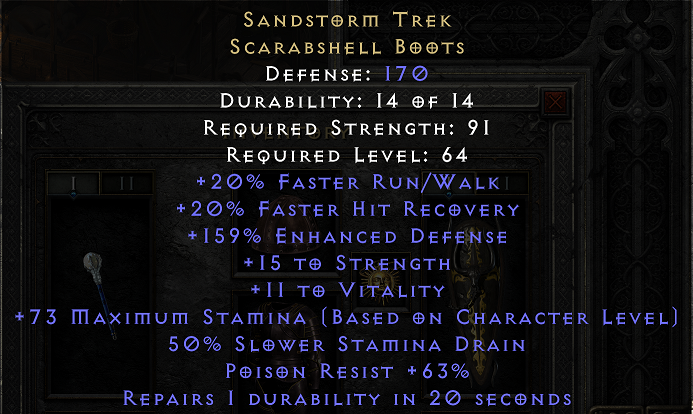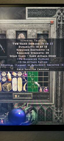 Ez a socket téma elég bonyolult tud lenni. A Crystal Sword-ban lehet 1-6 socket, de ezt a tárgy szintje határozza meg. A boci pályán eső kard olyan szintű, hogy abba legfeljebb 4 socket lehet és Larzuk mindig a maximális számú lyukat teszi a fehér tárgyakba. Ha mondjuk Hell nehézségről viszel neki egy ugyanolyan kardot, akkor abba már 6 lyukat tenne, így nem lenne jó a Spirit-hez.