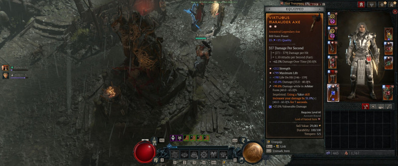 És akkor 1hitelt valami pit50en. 45 kb 3:30 alatt ment le és kb a mozgási tempó volt a limit. Egy elit volt a környéken, és nem tudom mi csapta le a teljes resourcet (ld Selig), a fortifyt és a full lifeot egyszerre. Úgy, hogy előtte Tier2őn infernal hordeoztam es bossoztam is, és gyakorlatilag semmi nem tudta megkarcolni sem a karaktert.