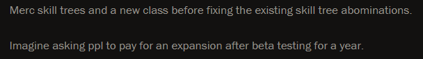 #20522la_cc engem a legjobban az basz fel, hogy világosan látszik, hogy az új tartalmakat tesztelés nélkül engedik ki. Ha meg mégis tesztelnek, akkor nagyon szarul. Hány olyan skill/affix vagy temper van, ami hót szarul és bugosan működik, a játék eleje óta.