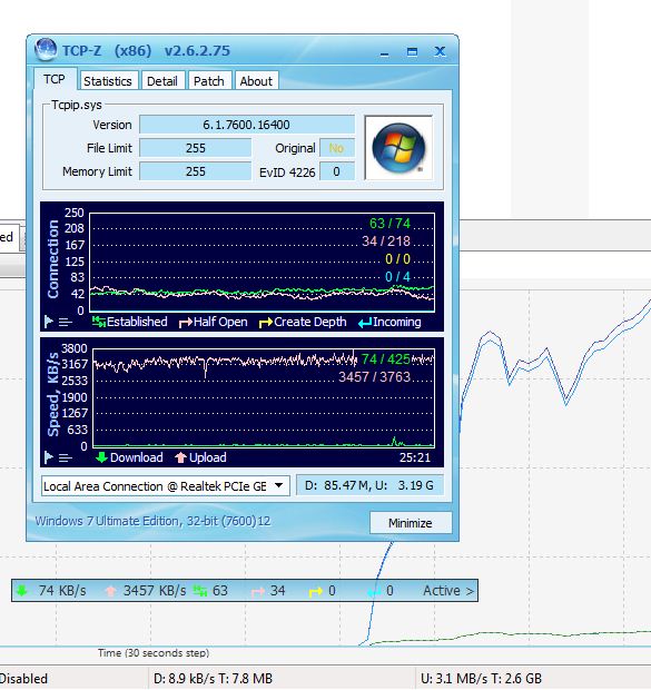 Előtte 21-es értéken szinte csak tcp kapcsolatok voltak, de hosszabb távon úgy nézem jobban megy tcp-n, utp-n eléggé hullámzó a sebesség feltöltésnél. -